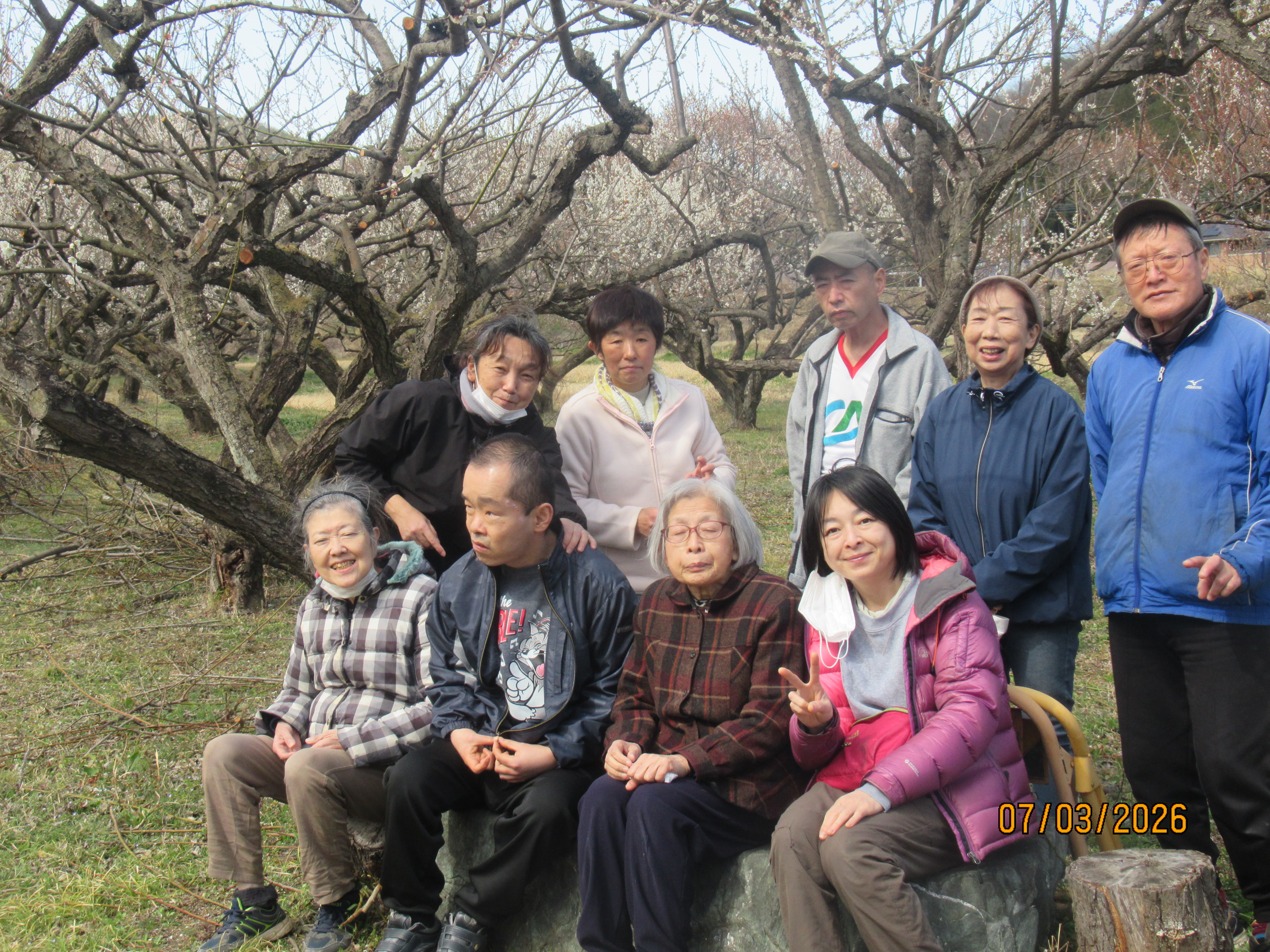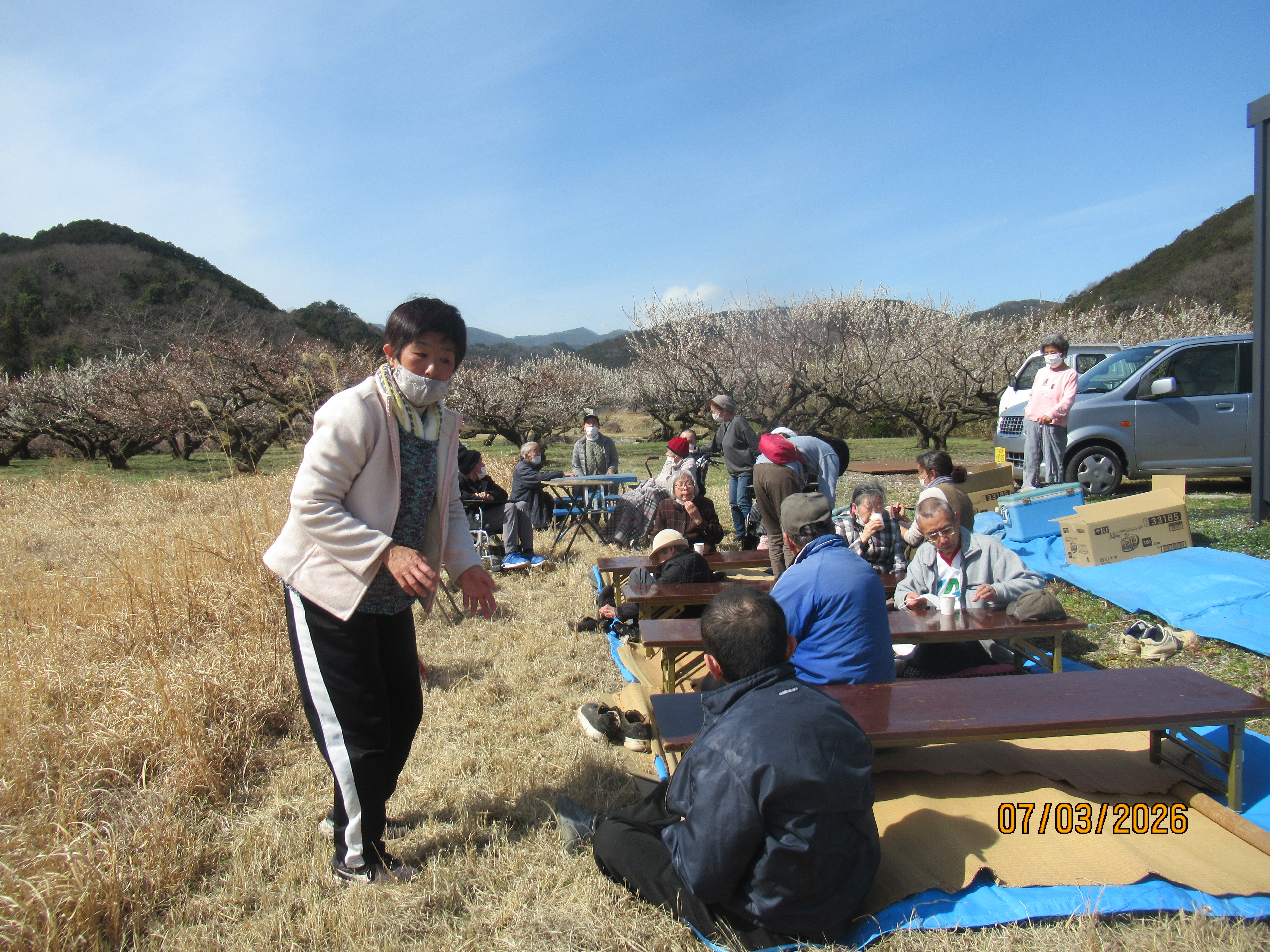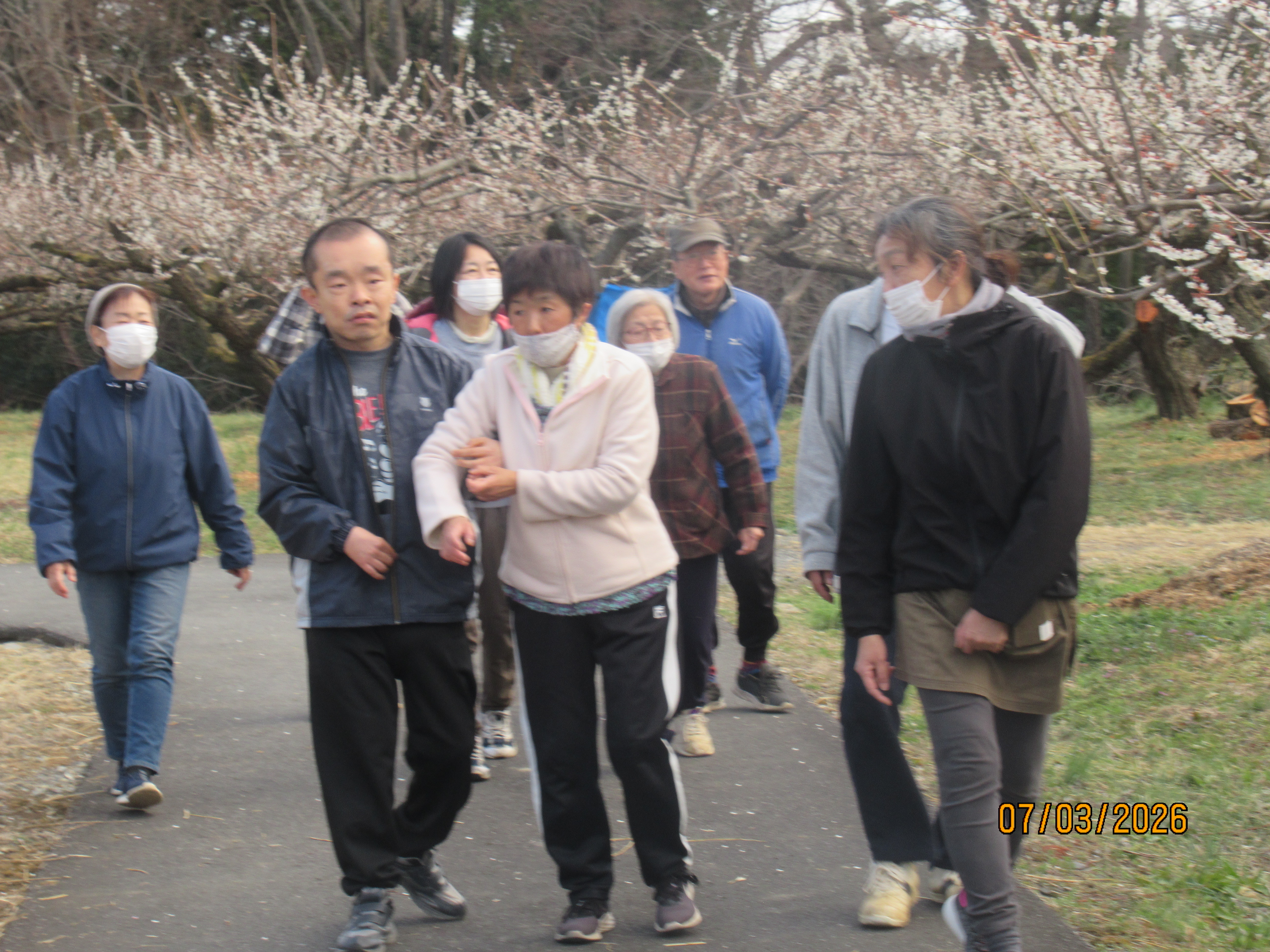 ・朝礼終了後、活動組の皆さんは越辺川の土手の