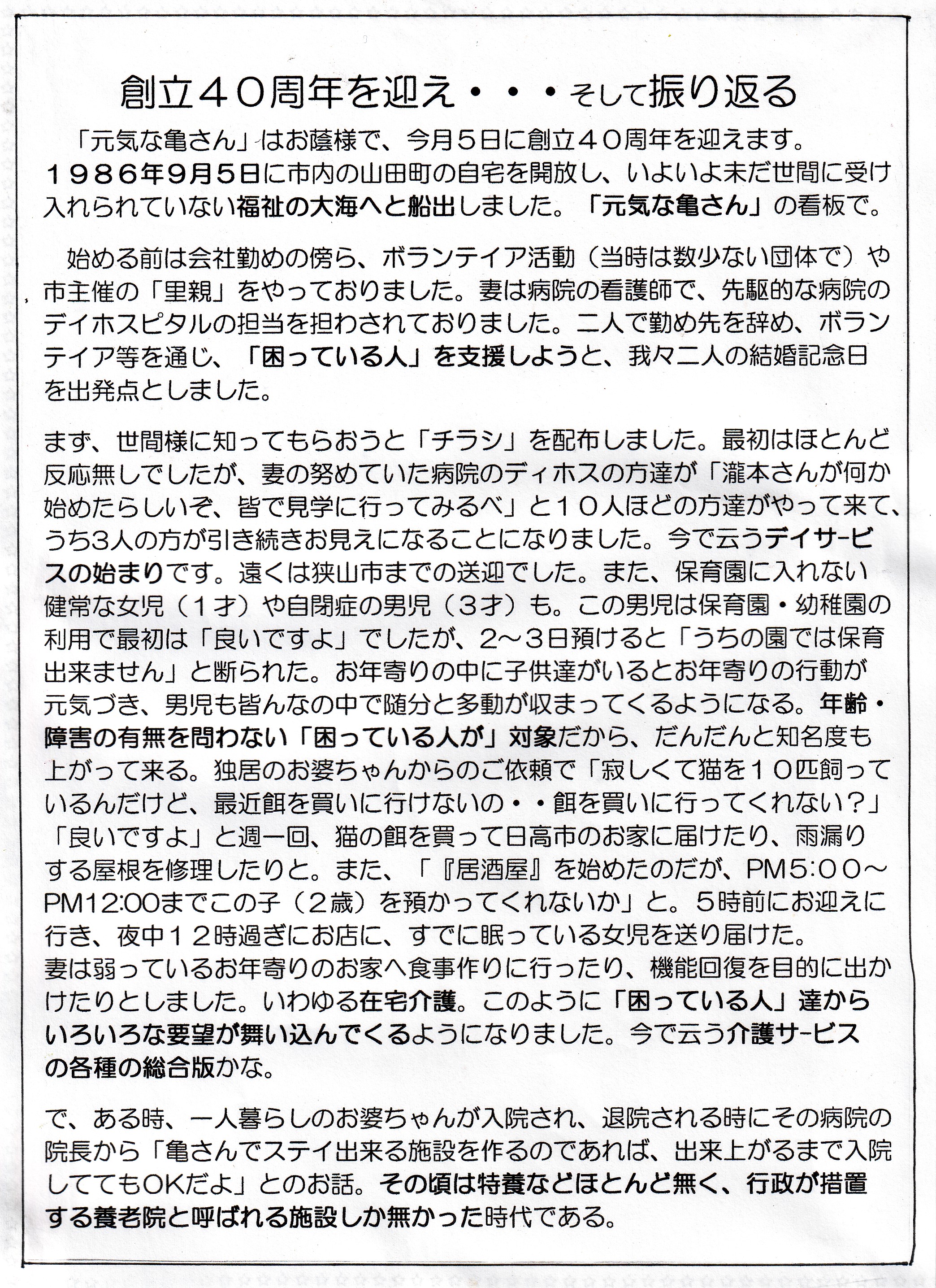 「元気な亀さん」「そんごくう」「金星組」[明日は晴れ」の家族誌